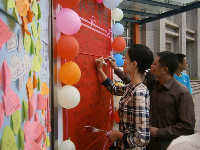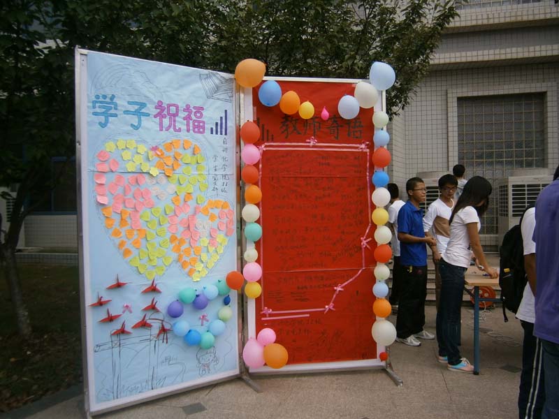 在这秋风飒爽,金桂飘香的九月,我们迎来了翘首企盼的第28个教师节。9月10号,在这充满阳光和温暖的日子里,由自动化学院2011级学生党支部举办的“桃李满天下,师恩似海深”的教师节祝福墙活动在南一食堂门口火热地进行着。