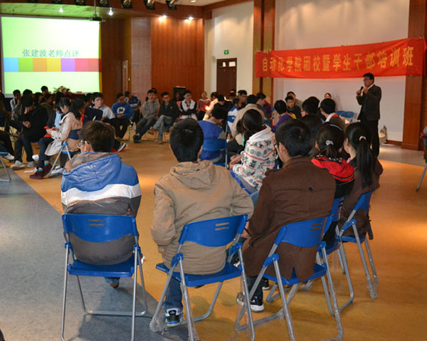 2012年11月14日14:30,自动化学院第二期团校暨学干培训班第四期——素质拓展训练在大学生活动中心多功能报告厅举行。教育科学与技术学院分团委书记张建波老师和自动化学院2011级辅导员汪颖老师作为应邀嘉宾出席此次活动。