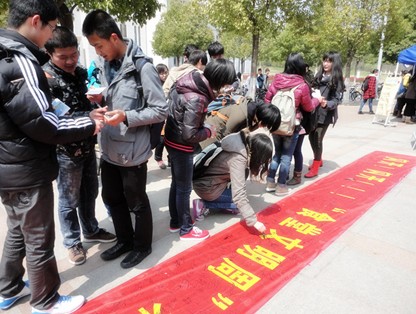自动化学院本2012级学生支部认真学习党的十八大精神,积极开展“为民,务实”的主题实践活动。针对学校食堂存在的种种不和谐的现象,自动化学院本2012级学生党支部经过精心准备,于3月26日和27日中午在学校南二食堂前广场开展“食堂文明周”倡议活动。