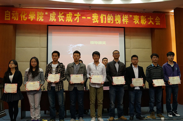 为深入学习贯彻党的十八大精神,自动化学院通过培育选树学生先进典型,在全院范围开展了“成长成才——我们的榜样”主题教育,评选出了一批在学习、科研、社会工作等方面表现突出、成绩显著,充分发挥先锋模范作用的集体和个人。2013年4月18日下午,自动化学院 “我们的榜样”表彰大会在仙林校区行政楼一楼报告厅隆重举行。南京邮电大学团委副书记李晓华老师、太阳城集团党委
