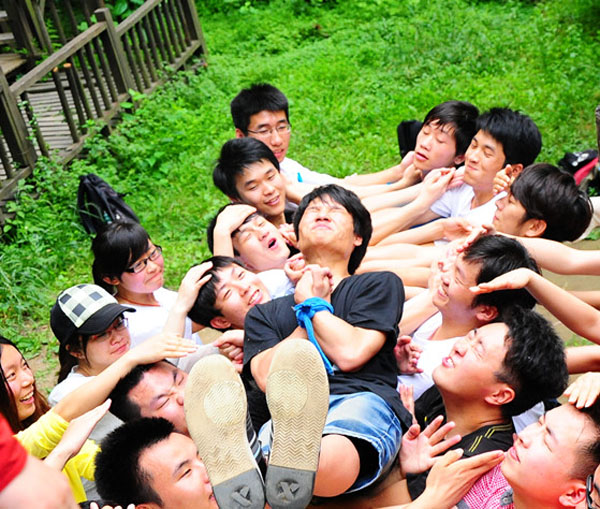 下午,全体学员前往中山陵素质拓展训练基地参加团队户外素质拓展训练。本次拓展活动,以小组为单位,设有“破除坚冰”、“信任背摔”、“生死电网”、“翻越高墙”四大模块。学员们在教练的带领下首先进行了一系列热身运动,消除成员之间的心理隔阂,使学员们尽快熟络起来。在接下来的“信任背摔”环节中,每一位学员有了从1.5米的高台上背摔,被其他成员用手搭成的架子接住的体验,从开始的不安、怀疑,到后来的笃定、信任,学员们给了彼此勇气与力量。“生死电网”环节,队长统筹安排,队员献计献策,在不到18分钟的时间里所有学员都成功逃生。“翻越高墙”这一项目则将本次活动气氛带向了高潮,项目要求通过搭人墙的方式,将所有学员送到5.2米高的求生墙上去。学员们通过在前面活动中确认的对彼此的信任和建立起来的团队合作默契,充分合作互助,历尽艰难困苦,最终完成这一项团队任务。