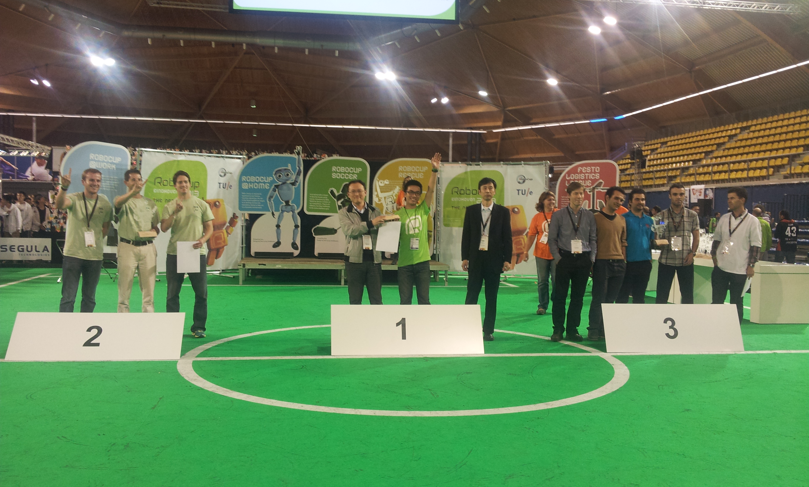 2013年6月24日-71,我校Apollo3D仿真机器人足球队在荷兰埃因霍温举行的2013 RoboCup机器人足球世界杯中,再次问鼎3D仿真机器人足球项目的冠军,这也是我校继2010年在此赛事获得的第二个冠军。