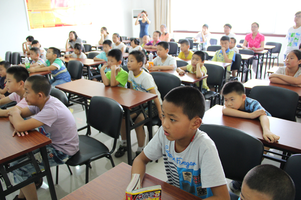 南京邮电大学机器人创新实践基地主席、2013年robocup世界杯3D仿真组冠军获得者赵赫成同学应邀担任主讲。本次活动得到了学院老师的关心支持和南湾营社区领导的亲切指导。参加活动的小朋友进入会议室,他们看到桌上摆放的各类机器人,既好奇又兴奋,“机器人!机器人!”他们纷纷用稚气的声音欢呼着。活动正式开始,赵同学向孩子们问了一个问题“你们心目中的机器人是什么样子的”?这一问题将小朋友带入了机器人的世界,他们争先恐后地回答,有的说“机器人可能会害人”有的说“机器人会爆炸”还有的说“机器人力大无穷”,赵同学通过视频放映的形式告诉了孩子们机器人到底是什么,他为他们讲解了机器人的发展历史和发明构成。