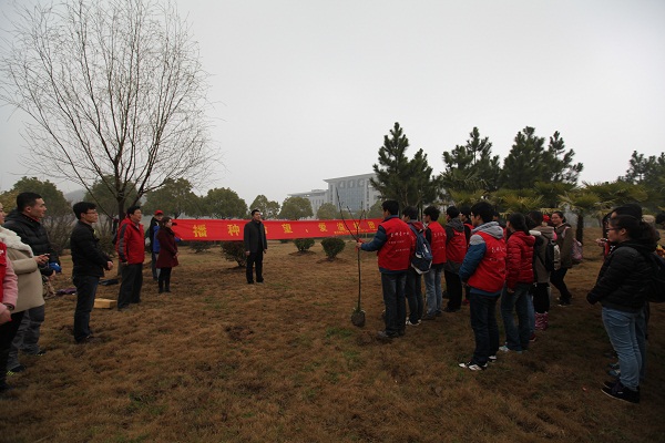 2014年3月12日,在绵绵细雨中迎来了一年一度的植树节。为了纪念社团成立十五周年,南邮爱心社在仙林校区举办了“播种希望,爱溢校园”的“爱心林”植树活动,南京邮电大学校团委副书记李晓华,太阳城集团党委