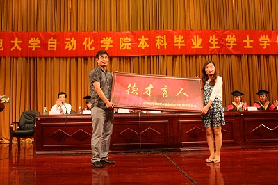 2014届学士学位授予仪式在大学生活动中心青春剧场举行。南京邮电大学党委常委、副校长王国平、教务处副处长陈小惠、自动化院院长王保云、自动化院党委书记姜文杰、自动化院副院长荆晓远、自动化系主任罗杰、测控技术系主任王勇和电气工程系主任付蓉出席了本次活动。本次大会由自动化院党委副书记黄建龙主持。