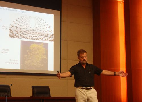 在近一个小时的报告中,Frank L. Lewis教授对现有分布式多智能体协同控制理论研究作了系统的报告,并深入讲解协同控制理论在智能电网中的应用,激发了与会教师、学生的浓厚兴趣。Frank L. Lewis教授渊博的学识、严谨的治学态度给师生留下了深刻的印象。