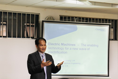 2014年10月17日上午,应自动化学院的邀请,英国Cranfield大学Patrick Luk教授来我校作了题为“Electric Machines and Drives - The enabling technology for a new wave of electrification”的学术报告。 报告中,Patrick Luk教授首先介绍了电机和电力电子与电力传动的基础理论和应用,着重阐述了可再生能源系统以及电动汽车与飞行器中的多电气结构研究中的关键问题,如电动汽车充电与智能电网的信息互动、基于3D模型下的有限元仿真分析电机磁场与相关设计问题;最后介绍了所在实验室目前在研的重点课题,以及相关领域研究的最新进展。 本次学术报告由自动化学院院长王保云教授主持。报告会结束时,Patrick Luk教授和与会师生进行了热烈的互动交流。Patrick Luk教授对自动化学院近年来在智能电网、电力电子与电机拖动等领域取得的成绩表示赞赏。同时,Patrick Luk教授表示将加强与太阳城集团