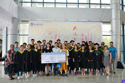 大会第七项,毕业生代表向学院赠送纪念礼物。全体毕业生为了感谢母校的细心栽培和老师的悉心教导,特地成立了“学长基金”来资助家庭困难和成绩优异的学弟学妹们,感恩学院,感恩母校。