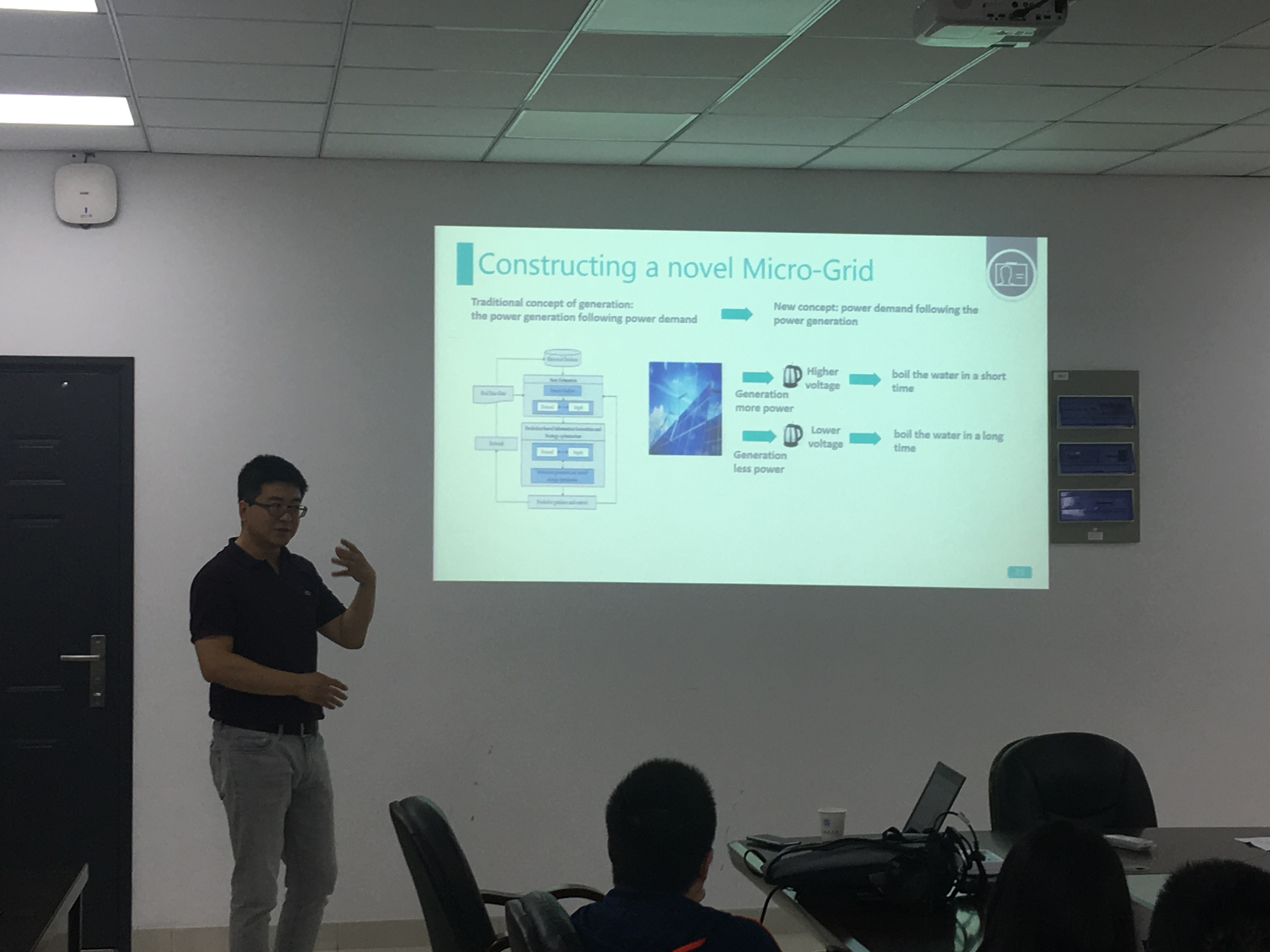Zhong Li教授介绍了一种新型的微电网拓扑与控制策略,讨论了光伏等可再生能源的有效利用及分布式智能能源管理控制策略,从谐波、功率因数和无功功率等方面深入分析,提出了许多新型的概念和前沿的技术。讲座结束后,Zhong Li教授参观了自动化院智能微电网实验室,并与自动化学院教师就智能微电网发展方向和前景进行了专题讨论。