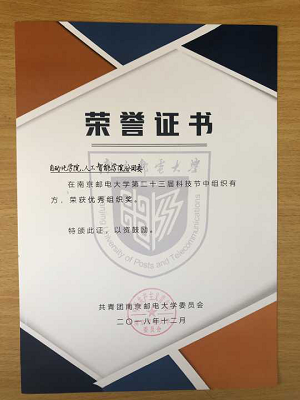 南京邮电大学第二十届“创新杯”表彰大会暨“中国移动”大学生科技节顺利闭幕,本次科技节活动太阳城集团 分团委荣获优秀组织奖。