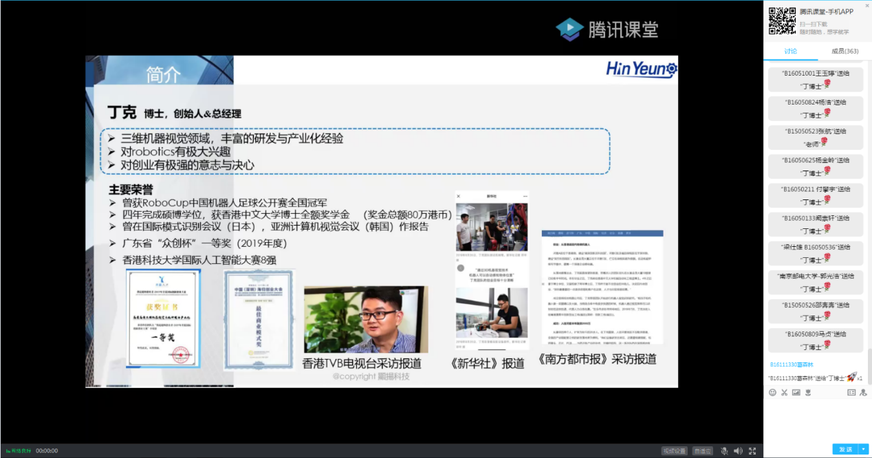 为更好的推进2020年度的大学生创新创业工作,在院党委的统一部署下,学院实施开展了自动化学院、人工智能学院2020年度大学生创新创业能力培养系列讲座活动,旨在加强学院创新人才培养,提高学生创新实践能力。2020年4月23日晚19点,本次系列讲座的第三讲:《三维机器视觉与智能制造》线上举行,此次讲座邀请了学院2005级优秀校友丁克博士主讲。讲座由辅导员仲鹏达老师主持,院内外共计300余名师生参加。