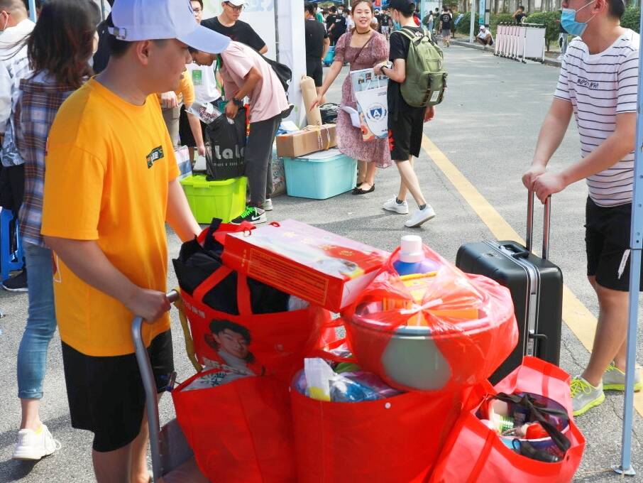 按照学校疫情防控要求,新生一律不得由家长陪同入校。自新生踏入校园,新生将由迎新志愿者全程陪同至迎新帐篷完成入学报到全部流程,他们也将收获来自太阳城集团 特别定制的“新生大礼包”,在专属签名墙上留下签名并拍照留念,最后由志愿者引导至新生宿舍。