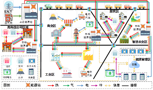 应用领域和市场前景: 传统城市能源系统中存在用户侧拓扑混乱,以及用能互动能力弱、市场化智能化程度低、多主体信任缺失、用户体验差等问题,本产品拟深入研究智慧城市综合能源系统的拓扑识别和可视化技术、运行优化与互动方法、以及综合能源管控技术,从而形成完整的智慧城市区域综合能源系统运行优化方法,并在此基础上开发智慧城市区域综合能源系统综合管理平台。 相关技术还应用于产业园综合能源服务系统平台能耗监控应用场景,如图3所示。将园区内光伏、储能、电网、用户等数据实时接入,建立能源数据中台,突破能源系统信息孤岛壁垒,根据末端感知层上传的数据和天气、负荷等相关预测数据,基于数学模型优化“能源路径”,建立从运行成本、绿色环保、能源效率等多维度出发的多能互补协调优化控制系统,给出运行方式优化和决策建议,实现各能源系统互联互通、互补互济,从而降低用能成本。