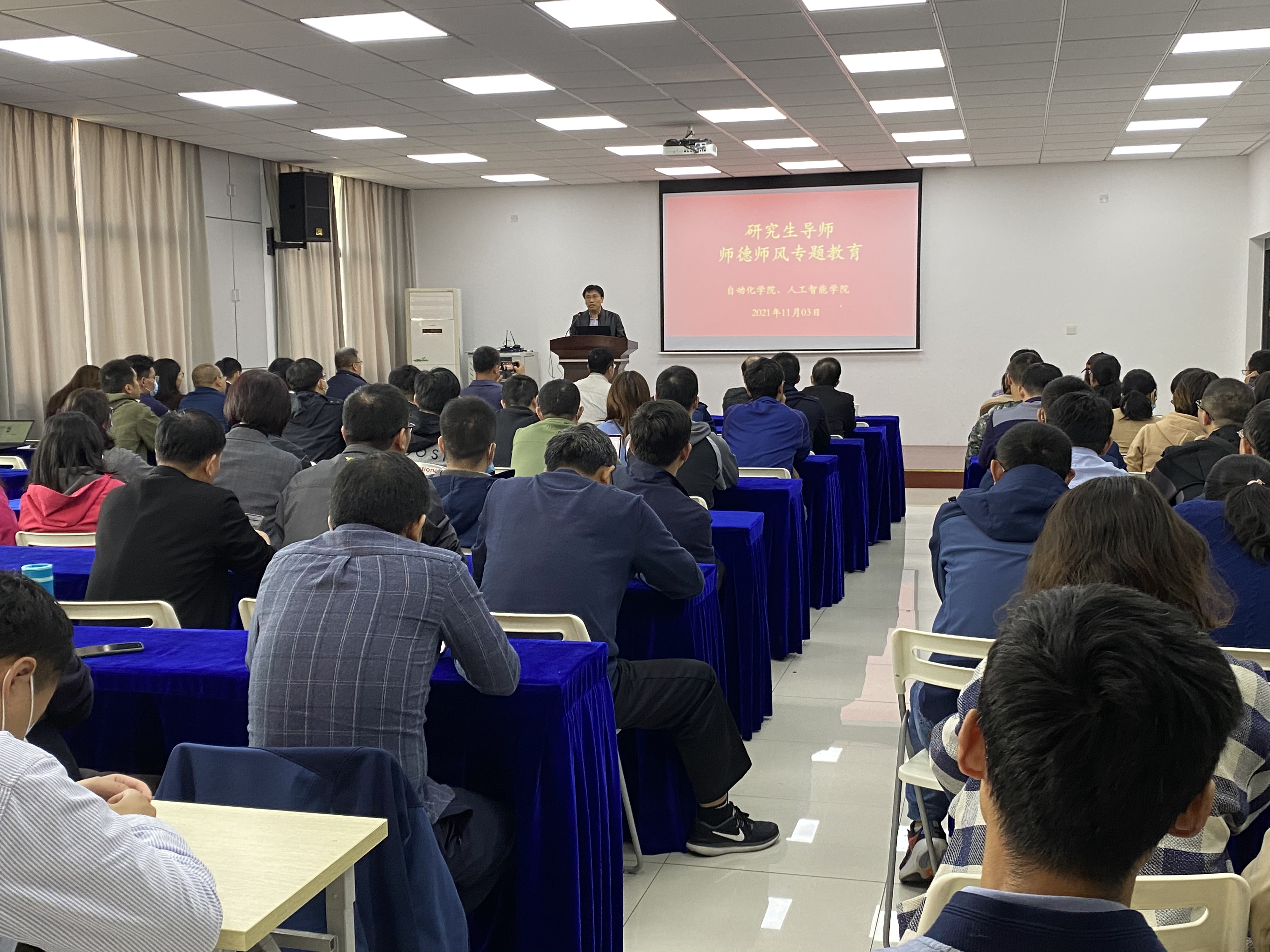 为进一步加强师德师风建设,强化教师职业道德修养,自动化学院、人工智能学院11月3日下午召开了研究生导师师德师风专题学习会,全院研究生导师参加,集中学习了师德师风,明确研究生导师的行为道德规范。