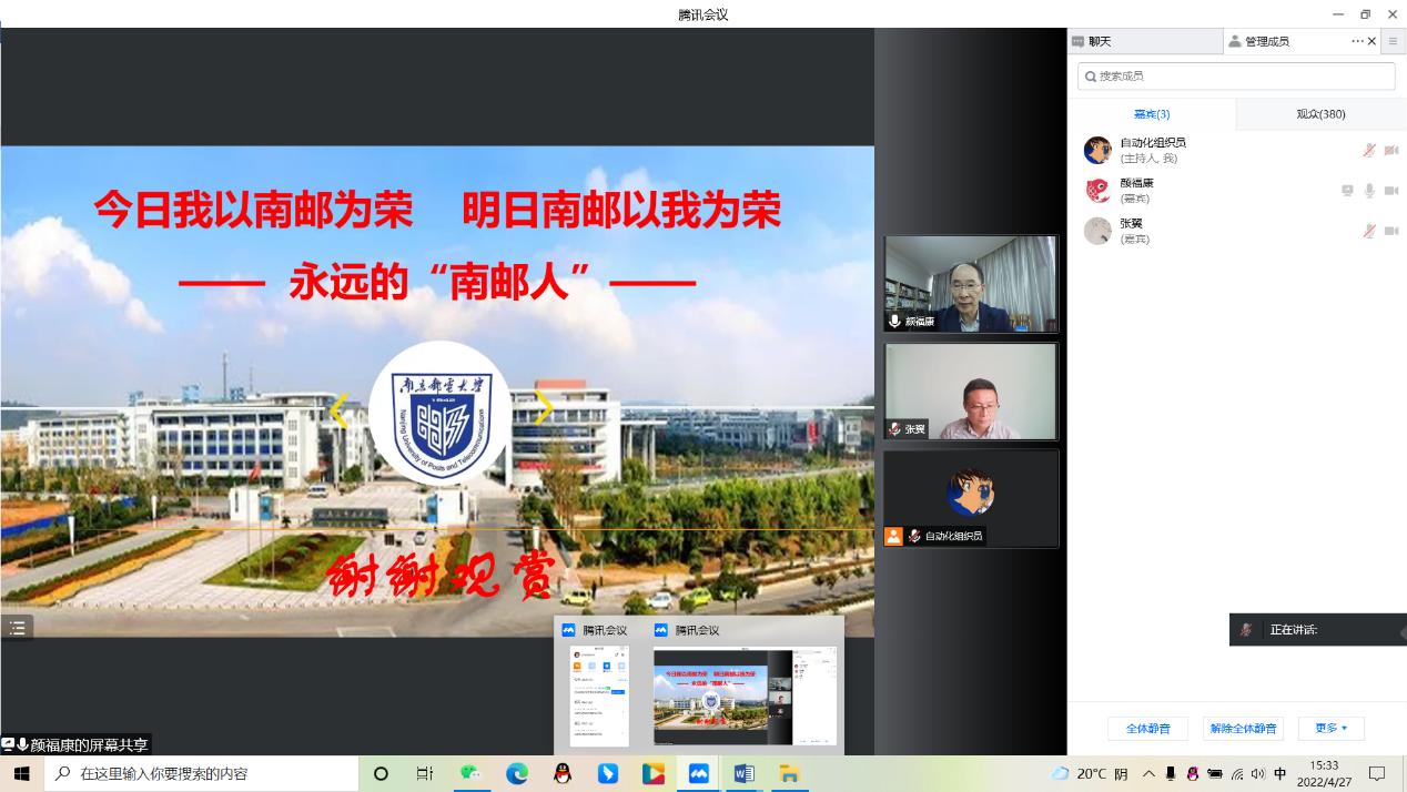 4月27日,太阳城集团-太阳城集团(中国)唯一官方门户 、人工智能学院入党积极分子聆听了由校关工委颜福康老师带来的“八十年奋斗、八十年辉煌”红色校史主题讲座。根据学校疫情防控要求,本次讲座全程采用线上形式开展。
