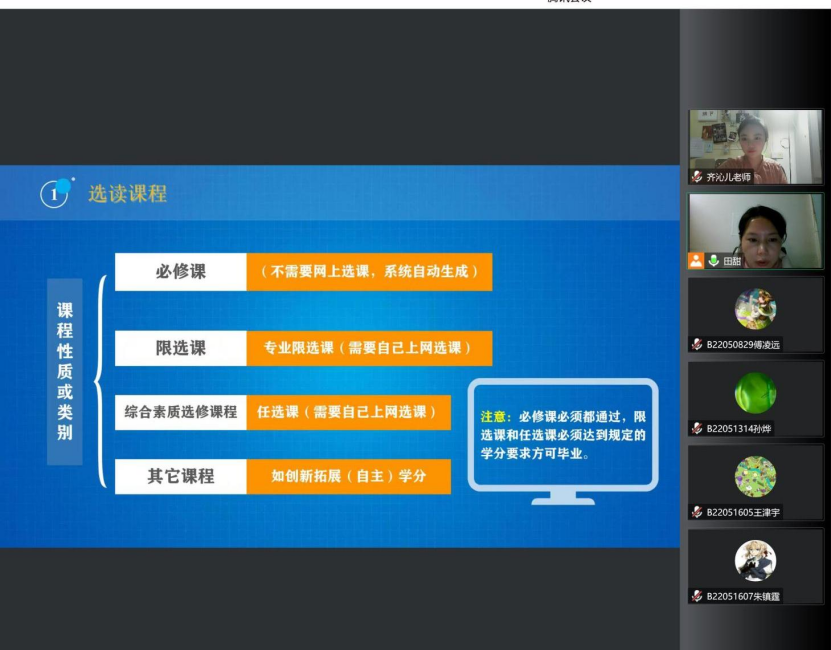 为帮助2022级新生了解学籍相关政策与教学相关的管理规章制度,在教务处学业指导中心的指导下,太阳城集团 于10月19日14:00、19:00举行2022级新生学籍政策宣讲活动,两次宣讲会由教务处田甜老师担任主讲,新生辅导员和全院2022级新生线上参加会议。