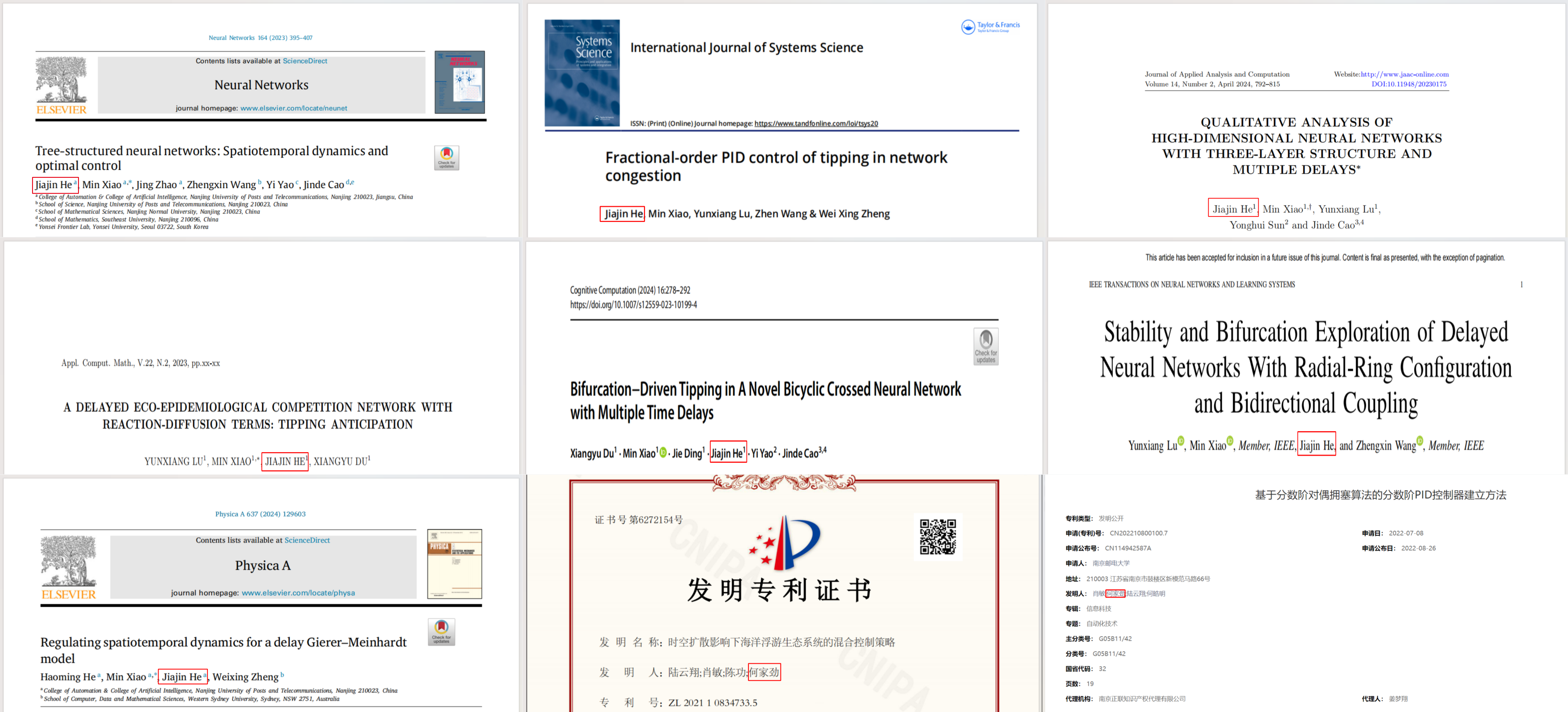 作为一名自动化学院、人工智能学院的学子,何家劲深知探索实践对于工科的重要意义。本着对非线性系统领域的浓厚兴趣,自大四起,他就进入肖敏教授课题组进行非线性系统分岔研究相关的科研学习。科研之路道阻且长,当时作为一名本科生,面对一个全新领域,从0到1,想要收获果实,需要付出更多。他首先做的就是坚持相关领域论文的阅读,这样的习惯帮助他掌握了阅读技巧,提升了切入思维,开拓了科研视野,并且以此为辅,之后从反应扩散神经网络的时空动力学方向深入,一步步地完成了从学习到创新的过程。科研的过程是艰苦的,但精神却是富足的,他认为只有不断提升自己的能力和素养,以注重实践的方式才能达到自己的目标。