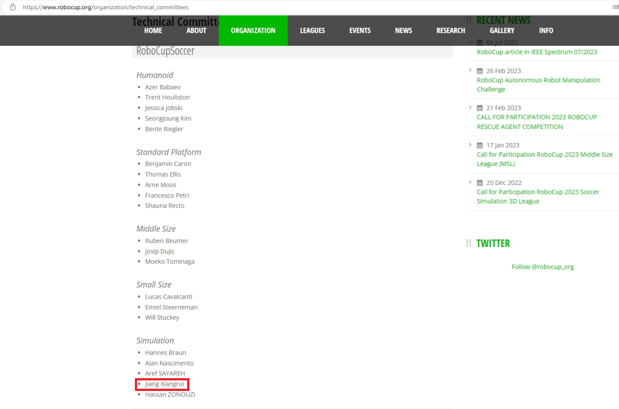 近日,RoboCup组委会官网公布了各个项目组的技术委员名单,太阳城集团 自动化专业大三学子江祥瑞同学经过竞选答辩、投票选举等环节,成功入选了RoboCup仿真项目技术组委会委员,成为目前该项国际赛事82个技术委员中唯一一个中国大学生委员。RoboCup机器人世界杯是世界机器人竞赛领域影响力非常大、综合技术水平高、参与范围广的专业机器人竞赛,旨在通过机器人足球比赛,为人工智能和智能机器人学科的发展提供一个具有标志性和挑战性的课题。