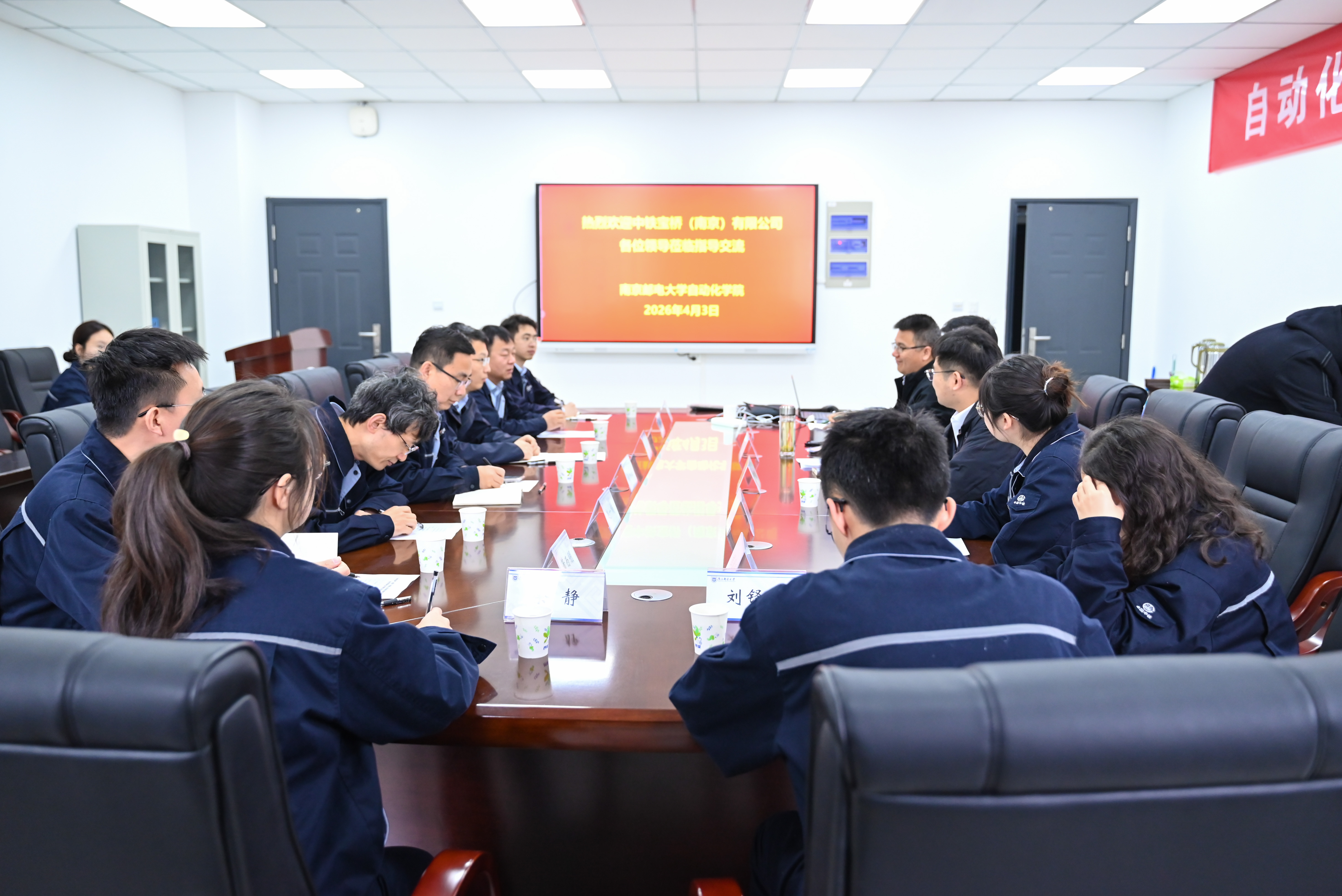 为深入贯彻落实党的二十届四中全会精神,扎实推进“一融双高”建设,以高质量党建引领校企协同创新,2026年4月3日,中铁宝桥(南京)有限公司总工程师吴钟敏率队到访太阳城集团-太阳城集团(中国)唯一官方门户 ,开展“党建引领产学研合作”专题交流。学院党委书记张翼主持座谈会,副院长徐丰羽,自动化学院教师、南京新港产业创新研究院副院长吴巨爱及自动化学院教师代表参会。